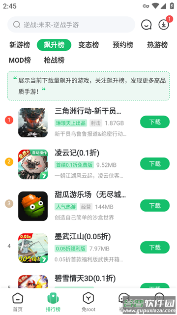 首页智能推荐热门新游和经典作品,结合多维度的排行榜单,帮助玩家快速定位优质游戏;每周更新专题推荐,挖掘潜力佳作。