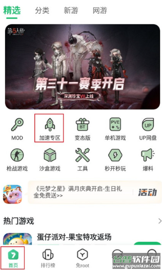 1、下载安装7723游戏盒,进入软件主界面找到"首页"-"加速专区"