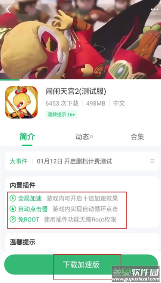3、进去后下载加速版游戏,游戏内内置全局加速,可以开启十倍加速效果!