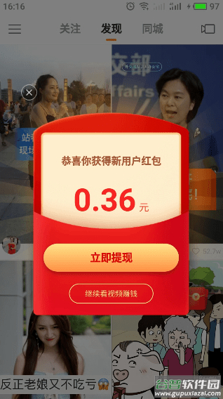 1、首先是新用户福利,新用户登陆即送新用户红包0.36元;