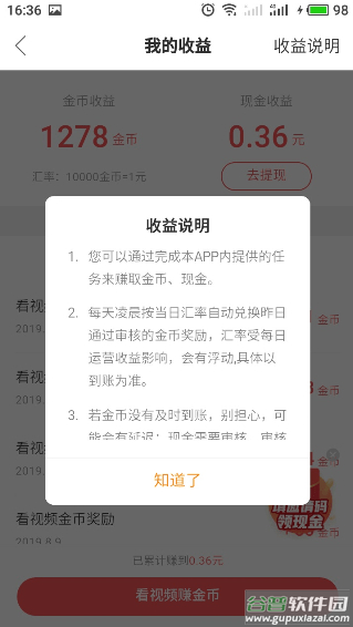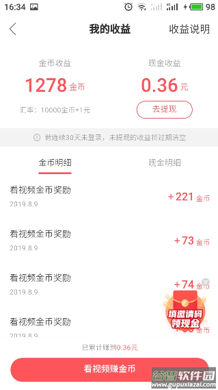 5、观看你的收益,查看你的金币获得情况,了解你的金币收益明细;