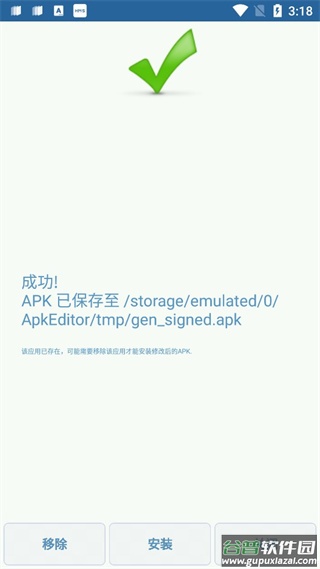 4、重新打包: 编辑后的文件能一键生成新apk,自动处理签名验证问题。