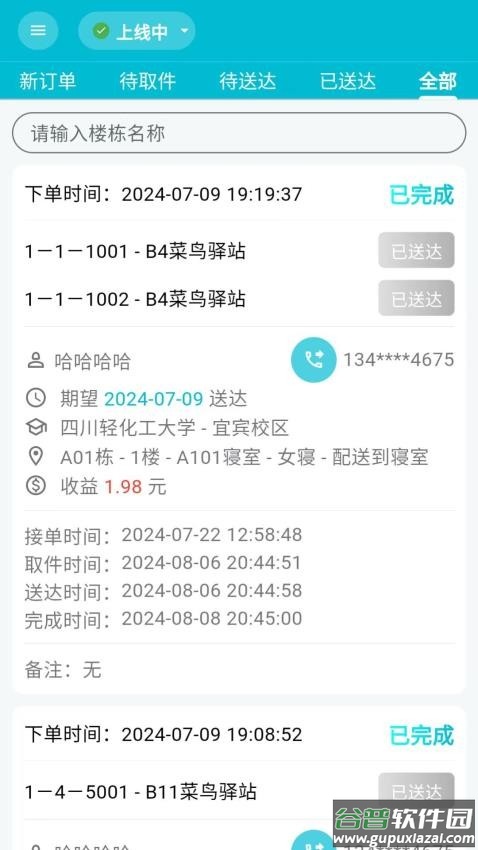 2、订单详情完整展示:包含取件地址、联系方式等关键信息;