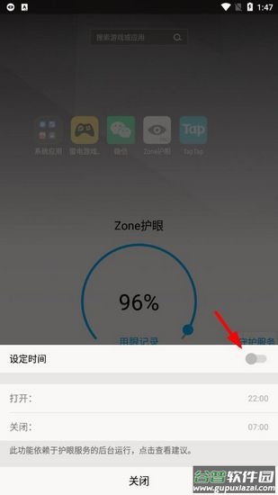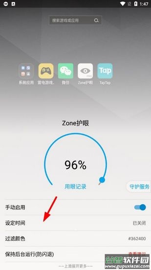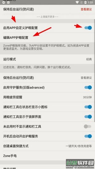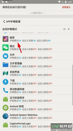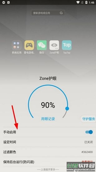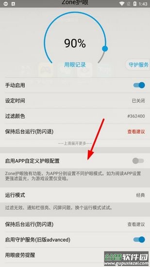 1、在设置中找到"启用app自定义护眼配置"选项并开启。