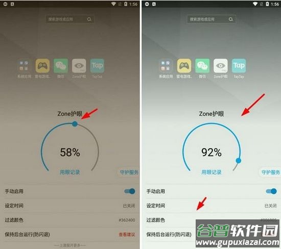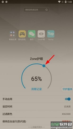 2、向上滑动可展开更多设置选项,进行个性化护眼参数调整。