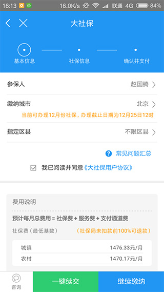 1、社保代缴:支持手机端完成全流程缴费操作;