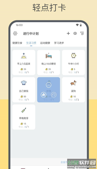 用虚拟金币兑换心仪商品,未达成目标时会显示待兑换物品激励用户;计划列表采用卡片式布局,滑动即可完成打卡,误操作三秒内可撤回;支持设置循环任务周期,从每日服药到月度目标都能精准提醒。