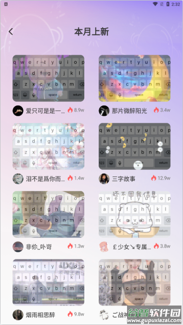 想要让你的手机键盘焕然一新吗?键盘皮肤免费最新版为你带来超多精美皮肤选择,从简约大气到潮流酷炫,从动漫二次元到自然风景,各种风格应有尽有。这款软件操作简单,皮肤资源丰富,每天都能换上不同心情的键盘样式。所有皮肤完全免费使用,无需付费就能享受个性化输入体验,让你的聊天打字变得更有趣。喜欢的话就来谷普下载试试吧。