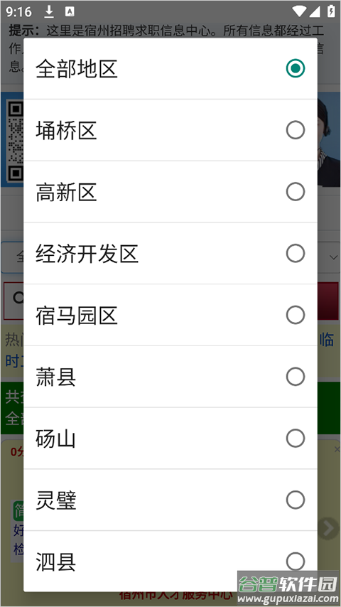 2、进入后可按区域筛选,比如只查看埇桥区或萧县的岗位,也能按行业分类查找心仪工作;