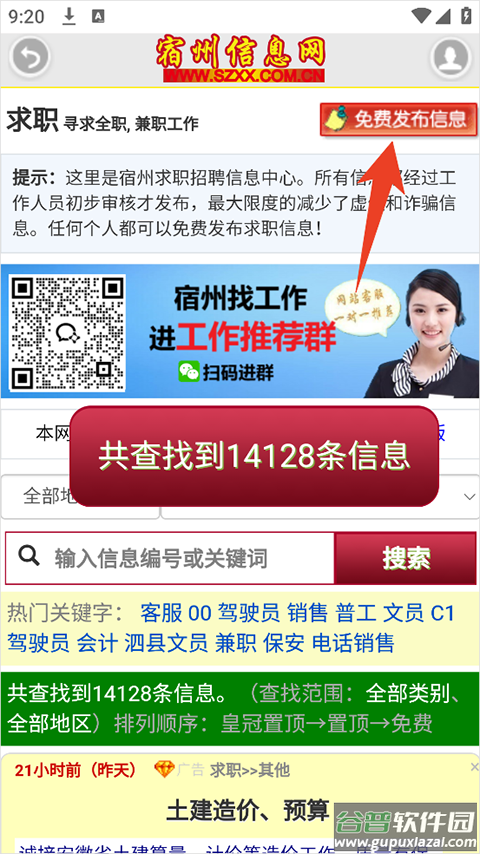 生活在安徽宿州的朋友们有福了,这款本地生活服务客户端能帮你解决日常大小事。打开手机就能查看最新新闻动态,了解街头巷尾的热门话题;想找份工作补贴家用,这里汇集了全市各类招聘信息;出门前查公交路线,看看实时天气情况,生活琐事一键搞定。不管是租房买房还是二手交易,都能在这里快速找到靠谱信息,操作简单功能实用,真正为宿州人量身打造的生活小助手,喜欢的就来谷普下载。