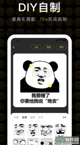 1、创意DIY:自由添加文字和贴纸制作个性表情;