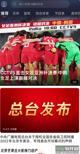 央视体育2022最新安卓版是中央广播电视总台官方推出的专业体育应用,专为体育爱好者打造。这款软件提供海量赛事直播资源,覆盖足球、篮球、排球、乒乓球等主流体育项目,同时整合CCTV5、CCTV5+等频道的直播内容。用户可以通过清晰的赛事时间表随时查看比赛日程,不错过任何精彩对决。软件采用智能视频技术确保流畅播放,支持实时回看功能,还能获取权威体育资讯和独家幕后花絮。喜欢体育赛事的朋友可以来谷普下载体验。