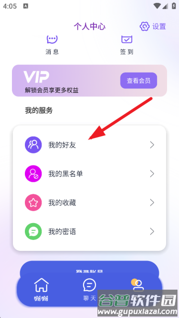 5、个人中心集中显示好友数量、收藏内容和会员有效期等信息;