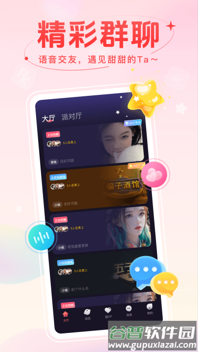 想找志同道合的朋友一起打游戏、追剧或单纯聊天吗?麦甜交友软件拥有海量活跃用户,随时帮你匹配兴趣相投的伙伴。这款年轻人专属的社交平台支持语音连麦、组队开黑、才艺展示等多种互动方式,无论是想找游戏队友还是倾诉对象,都能快速找到合适人选。平台提供CP匹配、亲密关系建立等特色功能,让线上交友更有温度,喜欢的就来谷普下载。