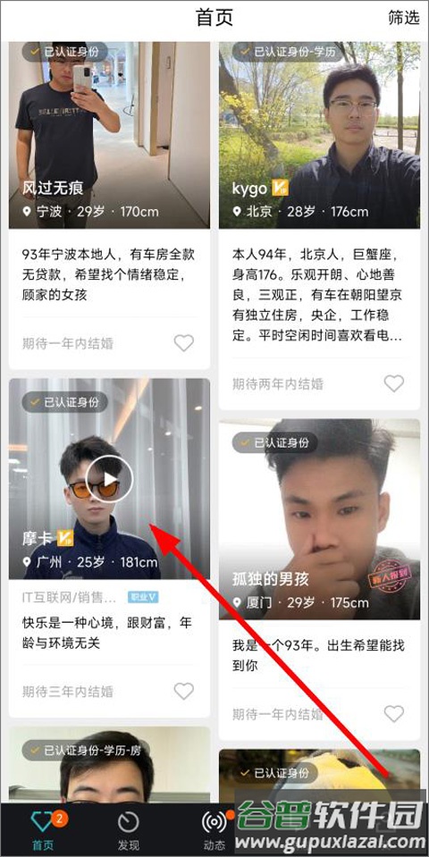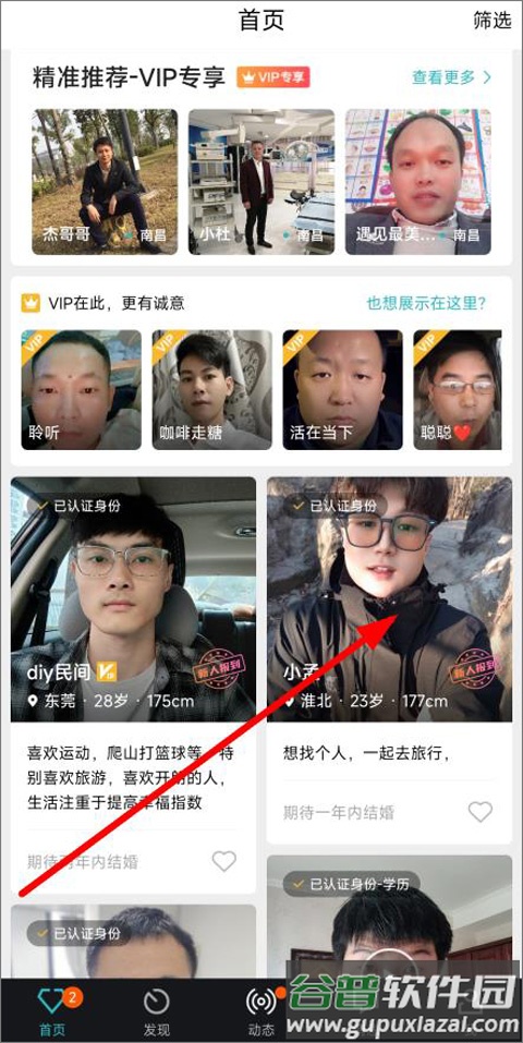 1、通过首页浏览找到心仪对象,进入其个人主页;