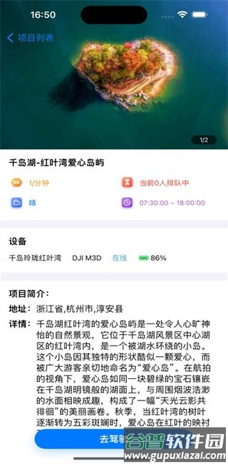 选择设备:登录后进入无人机专区,地图显示可用设备分布位置;