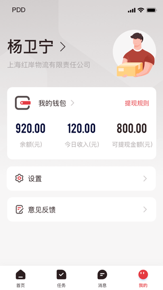 打开拼多多快递员版app,点击注册按钮,填写个人资料完成身份认证。