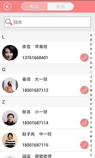 快速查找联系人,家园沟通更便捷,直接拨号,提高联络效率