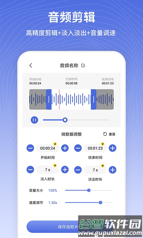 2、可对音频进行个性化编辑,制作专属的手机铃声或提示音效;