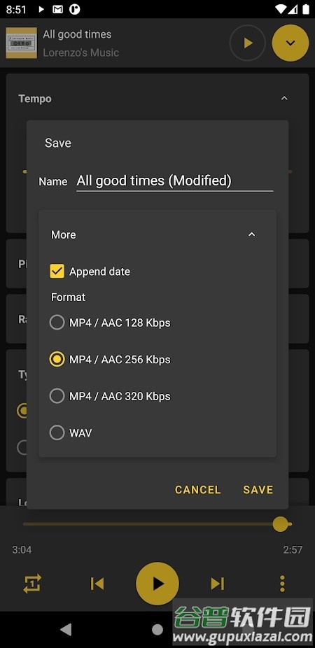 这款播放器采用全新界面设计,具备更完善的功能体系。当您对处理后的音效满意时,可直接将成品保存至本地存储。它支持实时调整音频参数,让每个用户都能打造个性化的反向音轨。
