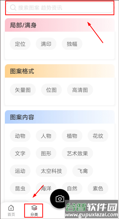 1、下载并登录云图app,进入首页后点击下方【分类】选项,从中查找所需的面料花型;