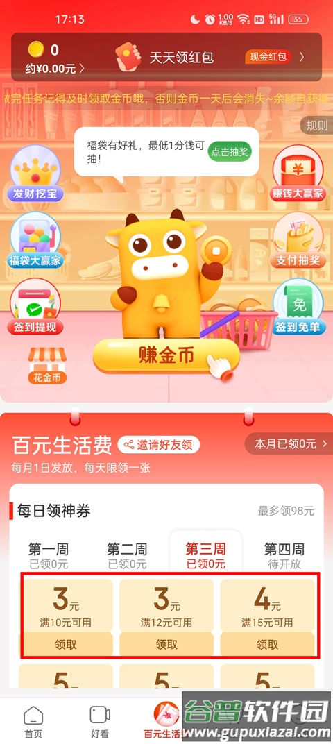 2、在页面下方找到“百元生活费”入口,点击进入;