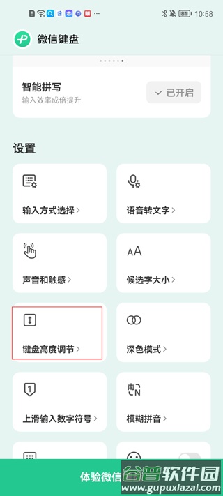 1. 启动微信键盘应用,向下滑动找到键盘高度调节选项;