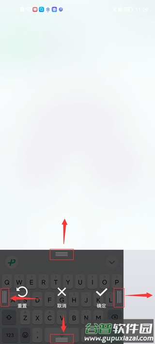 5. 进入调整界面后,拖动键盘四周的边框即可自由改变键盘显示大小。