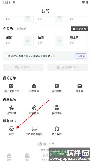 在个人页面中找到并点击【设置】。