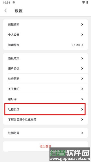 进入设置页面后,点击【吐槽反馈】入口。