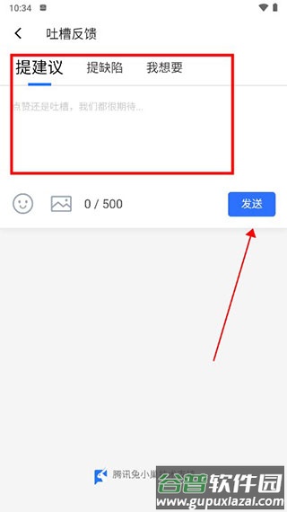 在输入框中填写意见或建议,点击【发送】完成反馈。