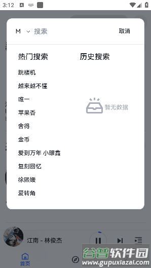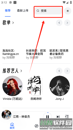 2、点击顶部搜索框,输入歌名或歌手名快速查找想听的歌曲;