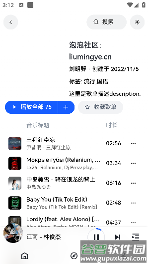 3、进入感兴趣的歌单,即可浏览并播放其中全部同类型歌曲;