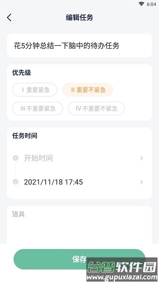 4、在第一栏花费5分钟整理闹钟待办事项,可设置优先级、任务时间、专注时长及休息间隔。
