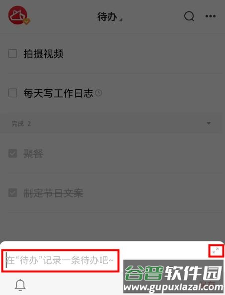1.3 点击输入框右上方扩展按钮,或长按主页待办分类底部的加号键,可进入全屏编辑模式输入长文本待办;
