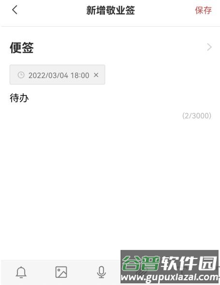 2.2 直接进入待办创建页面,可输入内容并设置提醒,支持添加文字、图片、录音及文件等格式;
