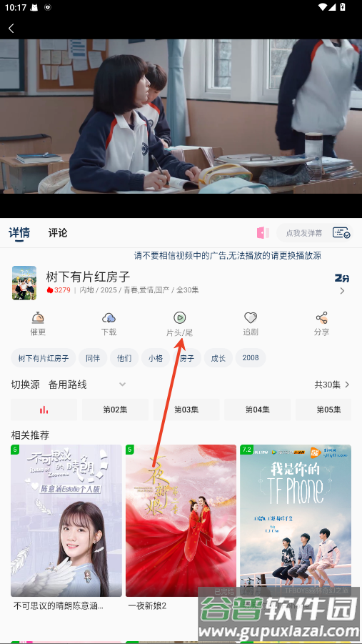 1.打开视频播放页面,点击屏幕上片头或片尾提示区域;