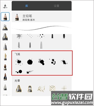 2.在飞溅效果分类中找到适合制造血迹的笔刷;