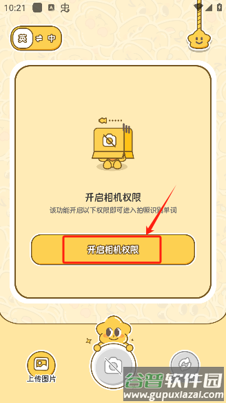 3、进入主页面后,根据提示开启相机使用权限;