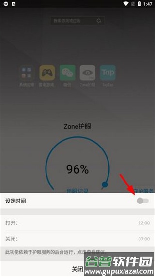 3、进入后自定义护眼模式的运行时间段,到达设定时间即自动开启;