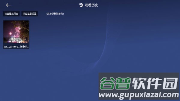 2、播放历史:在文件管理界面向左移动焦点进入观看历史页,菜单键可删除记录;