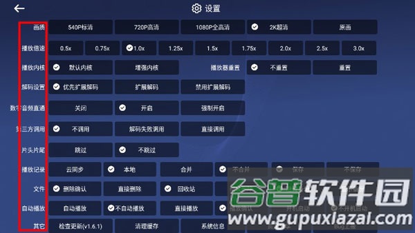 4、播放设置中提供画质选择功能,最高支持4K原画,可开启自启动、续播及自动字幕;