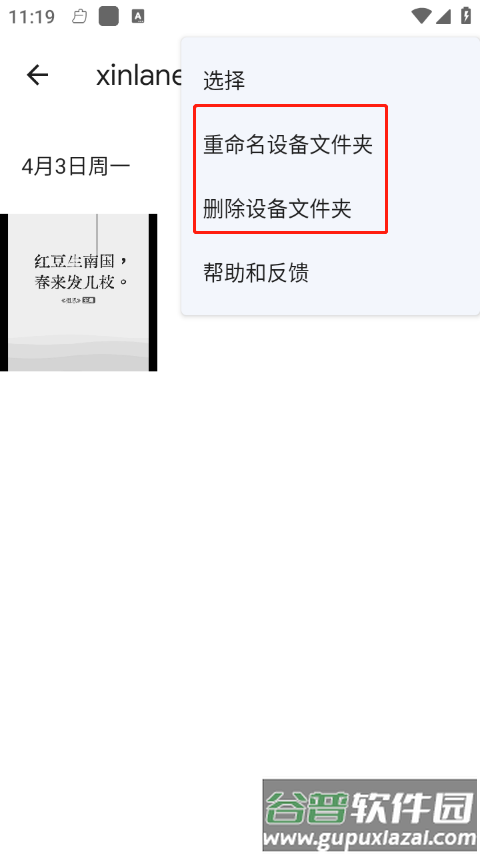 2、在此处可对图片所在文件夹重命名,或删除设备中的文件夹;