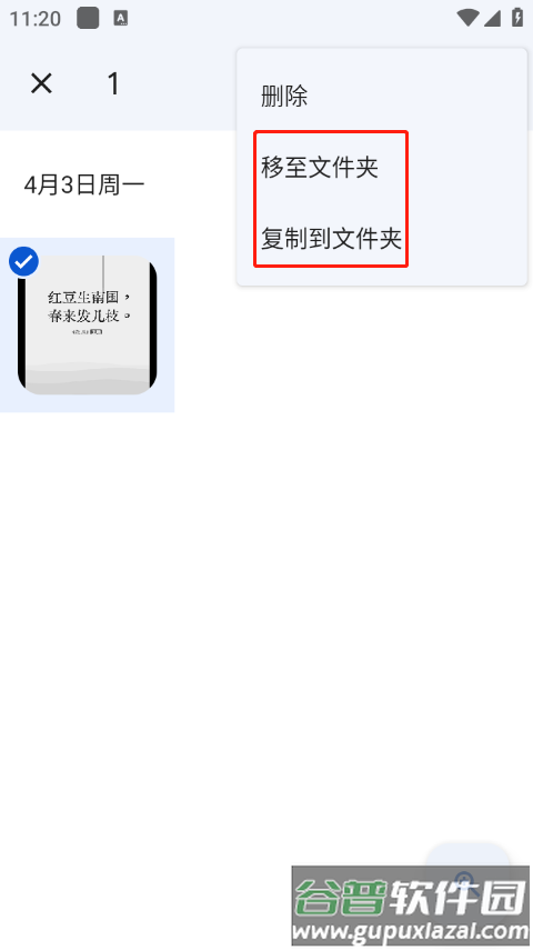 3、选中多张图片后,执行移动至文件夹或复制到文件夹操作;