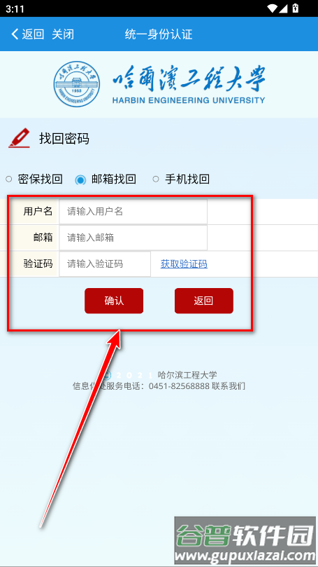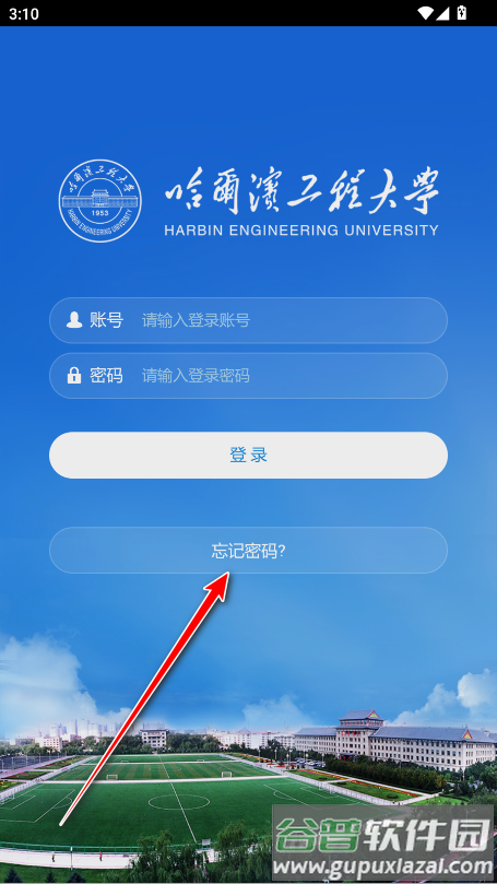 1.启动HEU移动校园应用,点击登录页的忘记密码选项。
