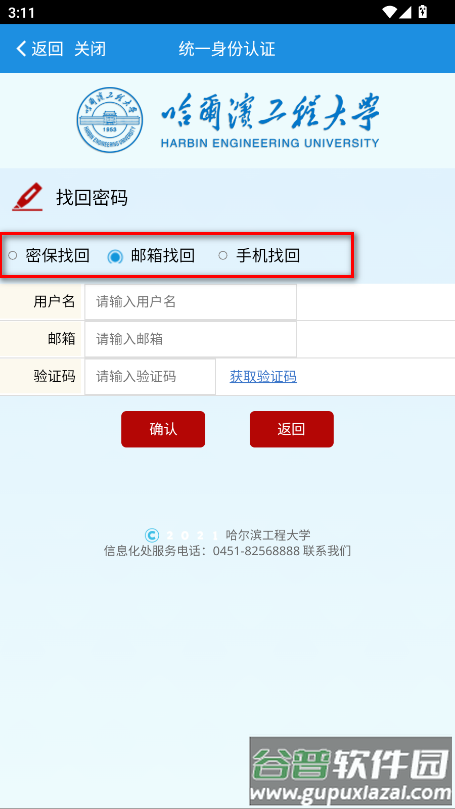 2.系统显示三种找回方式,此处以邮箱找回为例说明。