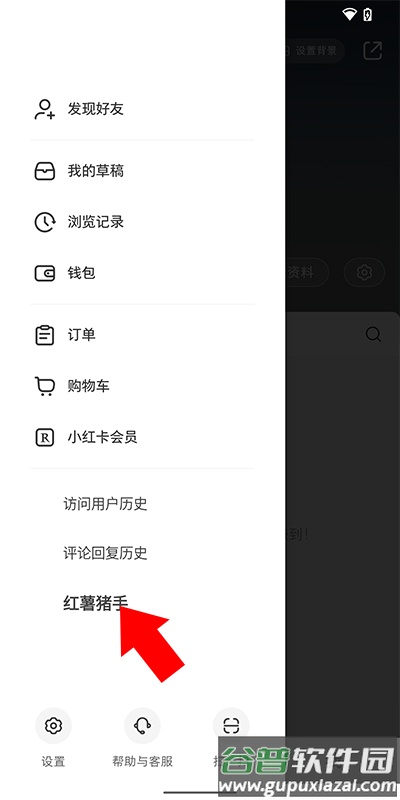 3.重新启动小红书客户端,在个人页面的侧边栏中找到红薯猪手配置选项。