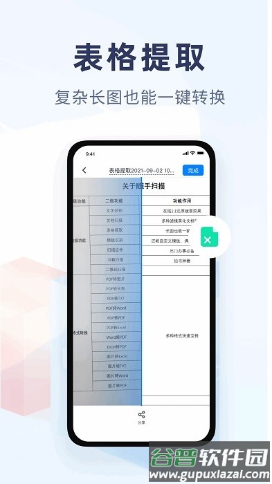 1.表格提取功能支持复杂长图转换,实现图片到Excel的一键处理;