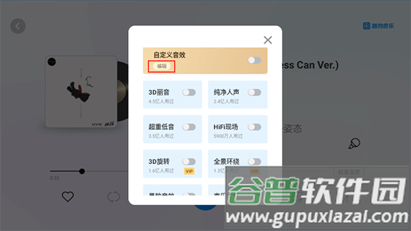 2、音效界面提供多种预设模式,也支持个人自定义设置,点击编辑按钮进入调整;