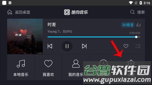 1、启动车载酷狗音乐软件,进入本地音乐页面,点击顶部菜单栏;